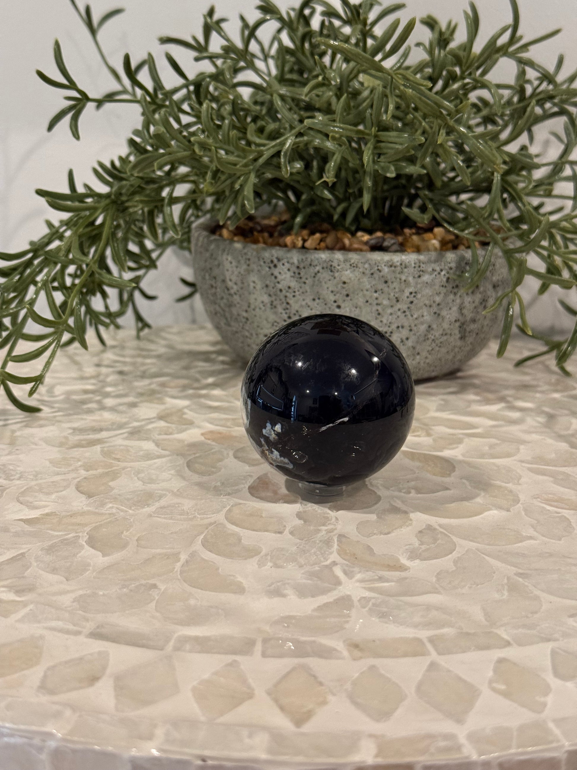 Black Flower Agate Sphere