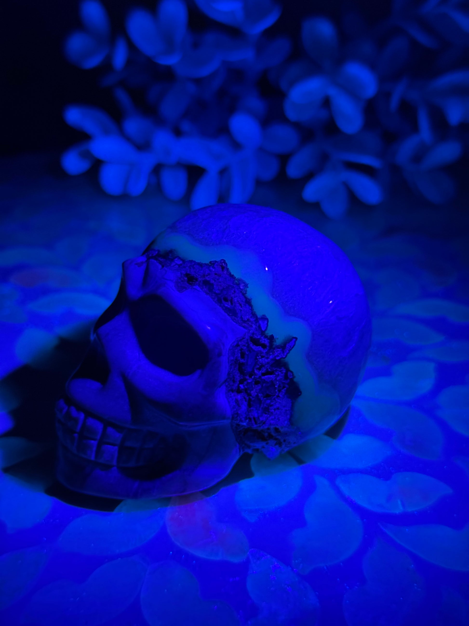 5.6cm x 5.4cm - UV reactive. Beautiful Quartz layer. Stone that is formed in lava connecting with ground water. Not all Volcano Agate is UV reactive - it is dependant on properties ingrained at time of formation.