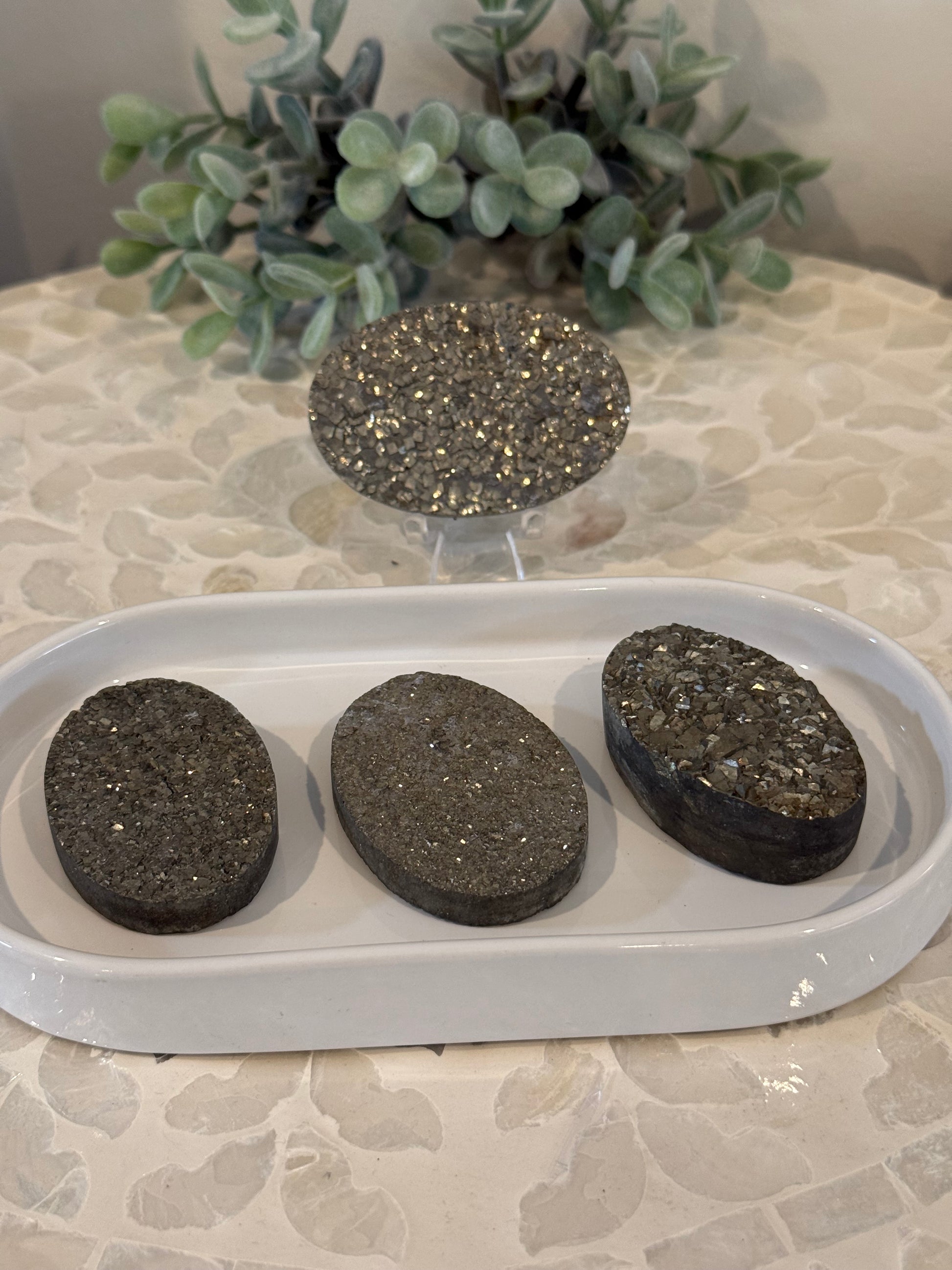 Pyrite has a beautiful natural sparkle and was once believed it had fire in its centre due to its intense shine. This formation is long believed to aid in blocking out negative energies and protection from various pollutants. A must have in any collection.