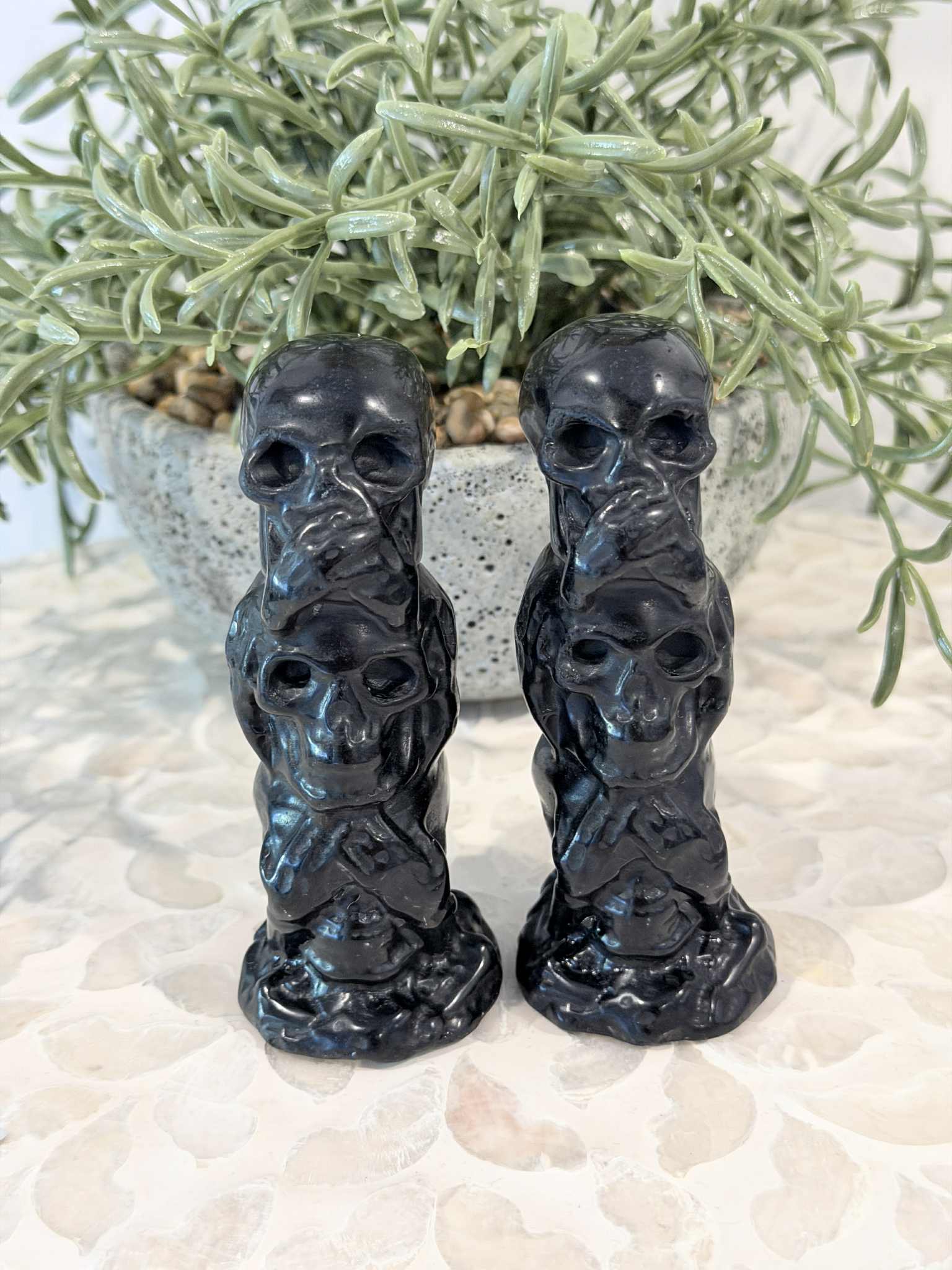 See No, Hear No, Speak No Evil - Triple Skulls - Yooperlite and Obsidian - Crystal Skulls