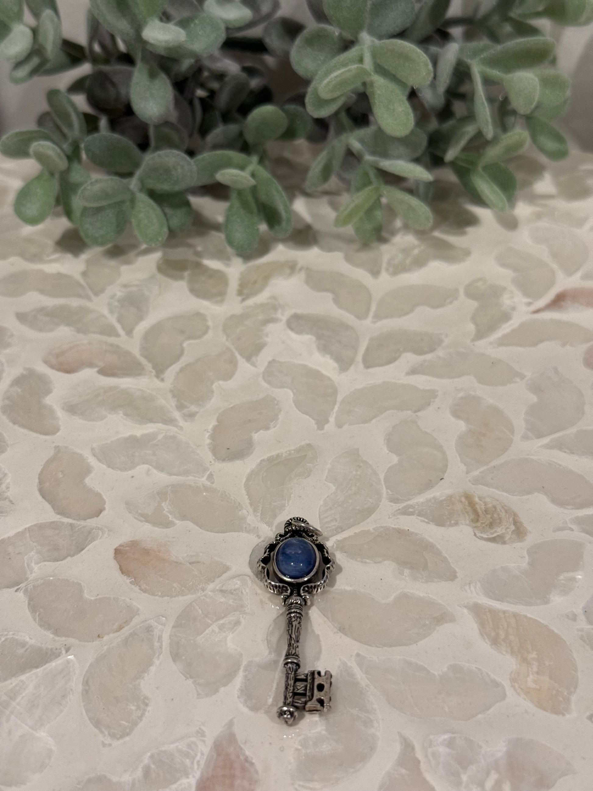 Silver-tone Kyanite Key Pendant